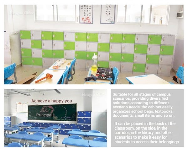 - Classrooms: Installed at the rear or side of rooms for students to store backpacks, reducing clutter around desks.